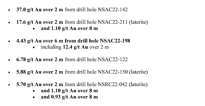 The Company’s 2022 Phase 1 drilling program consisted of 57 reverse circulation (RC) holes (see press releases dated August 29, 2022 and September 13, 2022), which focused on South Niaouleni, Kankou Moussa, Lebre Plateau and Gouingouindougou and 206 shallow AC holes designed to define additional gold targets throughout the licence for follow-up RC drilling.